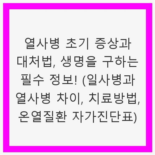 👉열사병 초기 증상과 대처법, 생명을 구하는 필수 정보! (일사병과 열사병 차이, 치료방법, 온열질환 자가진단표) 바로가기열사병 초기 증상과 대처법